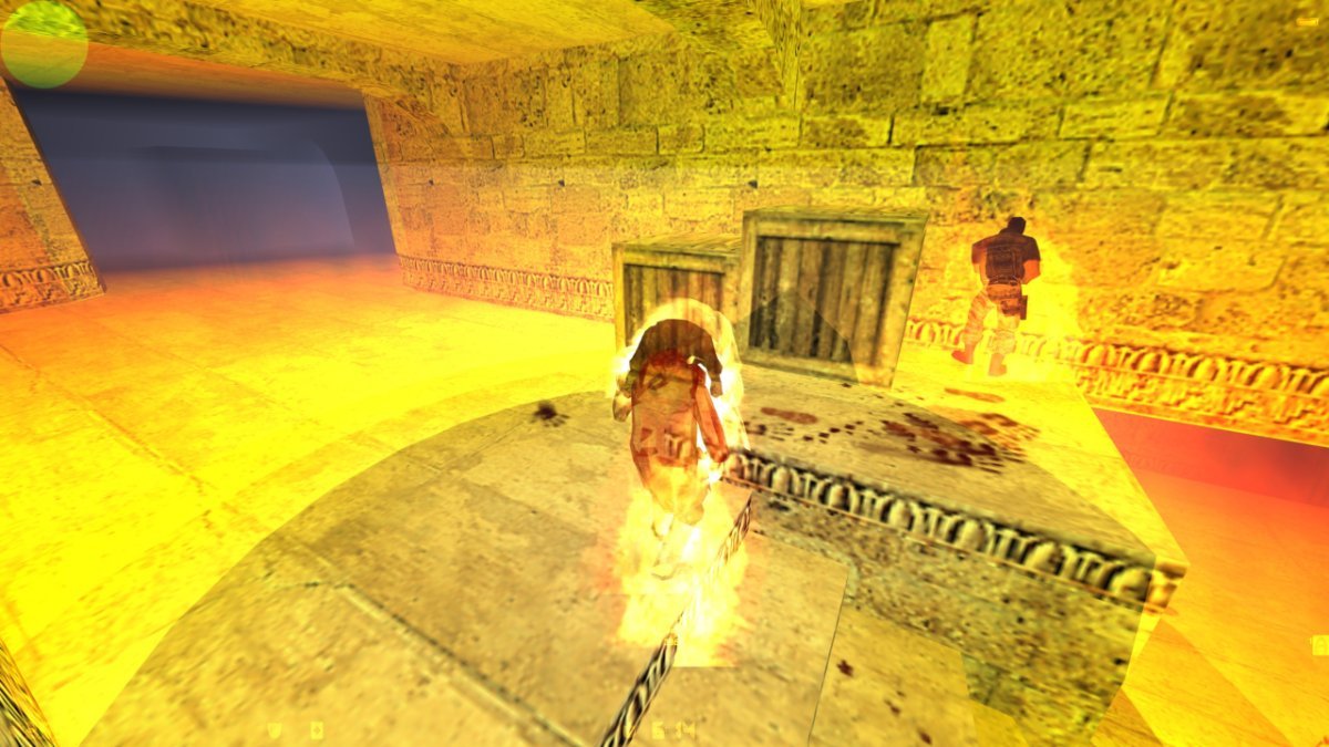 • Впадает в 3 секундное бешенство от поджога гранаты, после заморозки гранатой, так же если упал в воду (само собой огонь не наносит урон)